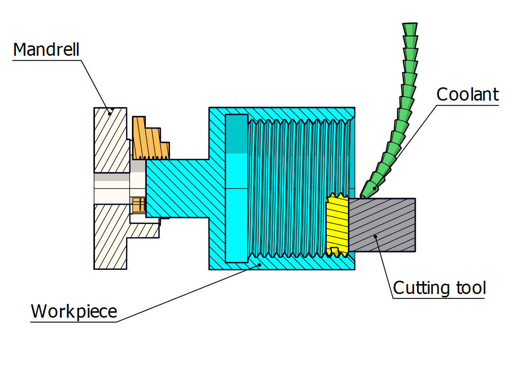• Draaien:Deze methode maakt gebruik van een draaibank om werkstukken met hoge snelheden te draaien en een gereedschap met een speciale vorm om lagen materiaal van het werkstuk te verwijderen. De vorm van het werkstuk is over het algemeen revolutionair. Als het werkstuk lang genoeg is, wordt een extra onderdeel gebruikt om het gewicht ervan te dragen.